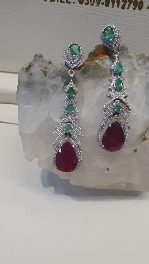 ✨ Rock your look with these must-have drops! ✨ Step up your style game with our Natural Emerald Drop Earrings, featuring a perfect blend of 92.5 sterling silver, 22kt gold plating, and vintage vibes. The bold emerald stones and slice diamond accents are pure fire, while the ruby and diamond details bring that extra lux factor. 🖤