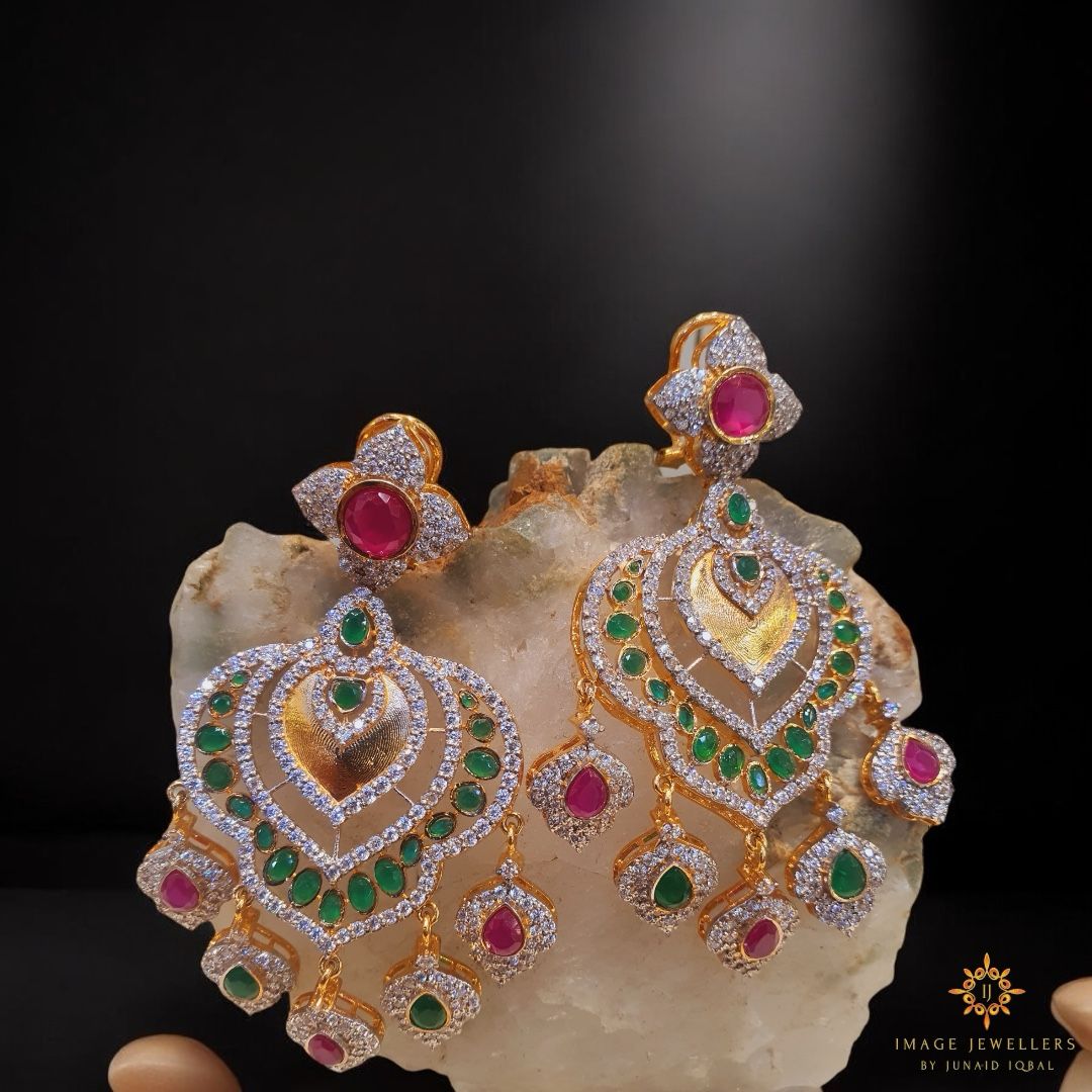 Serving elegance with a side of sparkle! These ImageJewellers 925 silver earrings are dipped in 22kt gold and dressed to impress with ruby and green jade stones. The unique design + diamond-style detailing? Pure main character energy. When tradition meets a fresh twist, you get pieces that turn heads and start conversations.