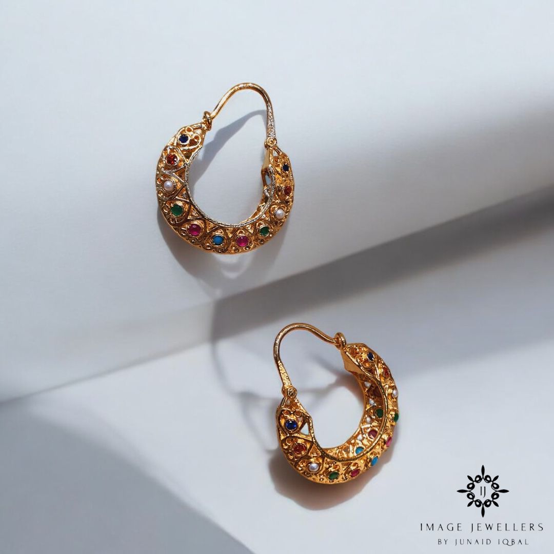 Bringing main character energy with these 22kt gold-plated, 92.5 pure silver earrings that have tradition and style in perfect harmony. 🌸 Nauratan stones + dainty pearls + a chic basket design = your new go-to for every vibe check, from ethnic fits to glam nights.