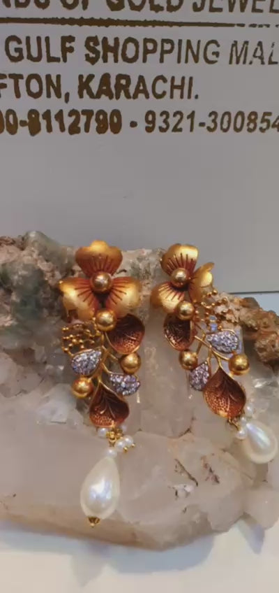 Big mood, bigger blooms! These twigs & honey-inspired floral brass earrings are here to serve all the drama you need. Handcrafted with luxe 22kt gold plating, sparkling diamond detailing, and crowned with a dreamy white pearl—because why choose between subtle and extra when you can slay both? 💎