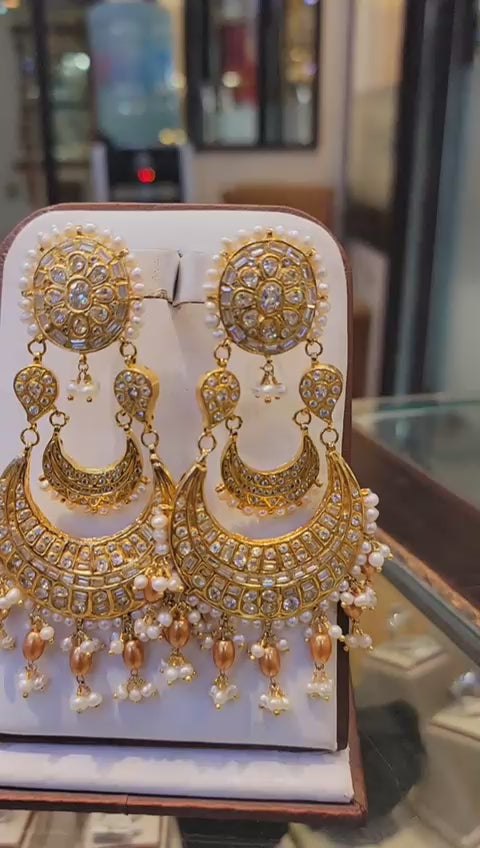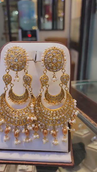 Elegance redefined ✨ Our exquisite 22kt gold plated kundan earrings with real pearls set on 92.5 silver, designed to add a golden touch to your everyday style. 🌟