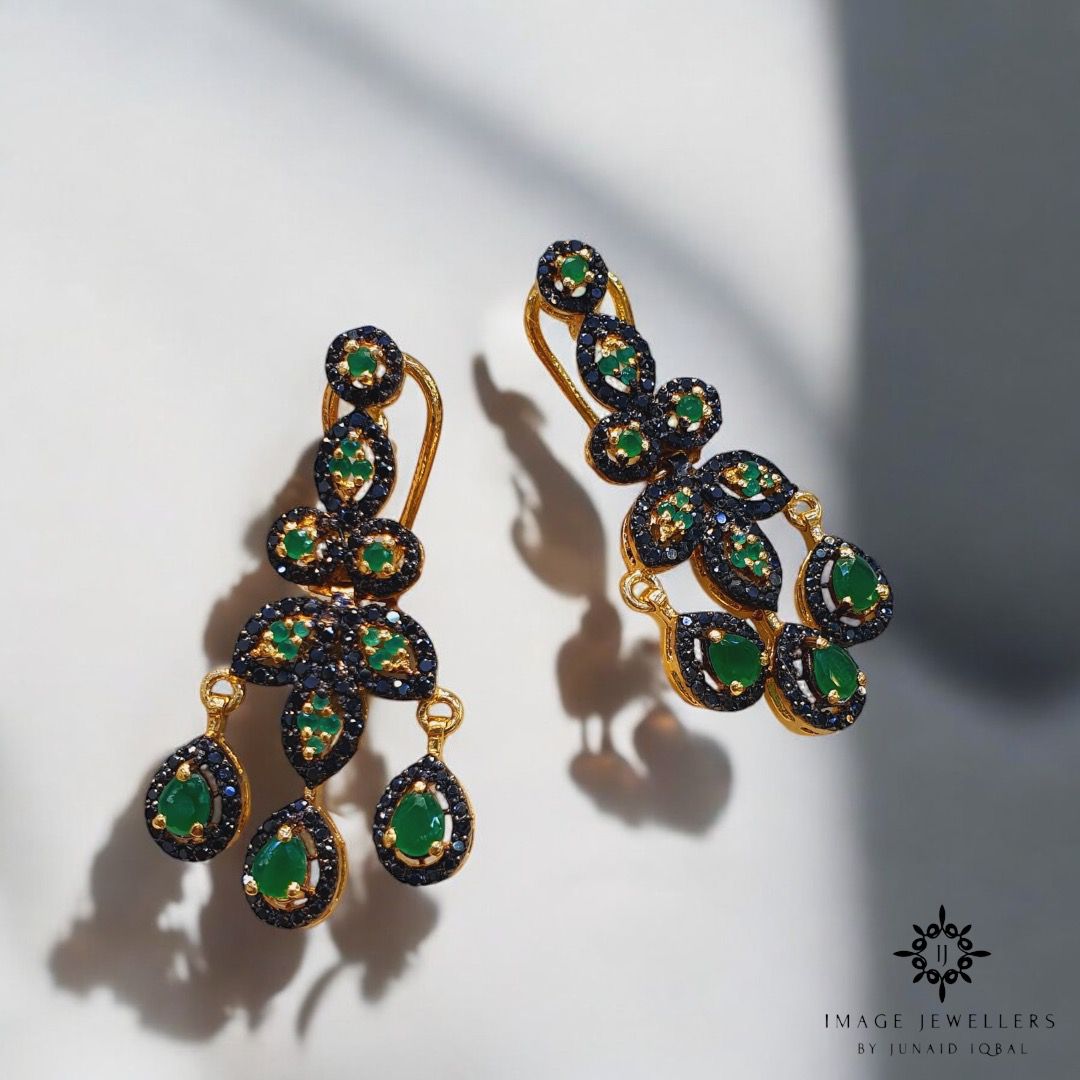 ✨ Level up your ear game with these gorgeously chic earrings! 💚 Crafted from 92.5 pure silver, coated in 22kt gold plating, and finished with a stunning black oxidized polish, these beauties feature elegant green jade stones that meets luxury with a touch of edge. 🌿