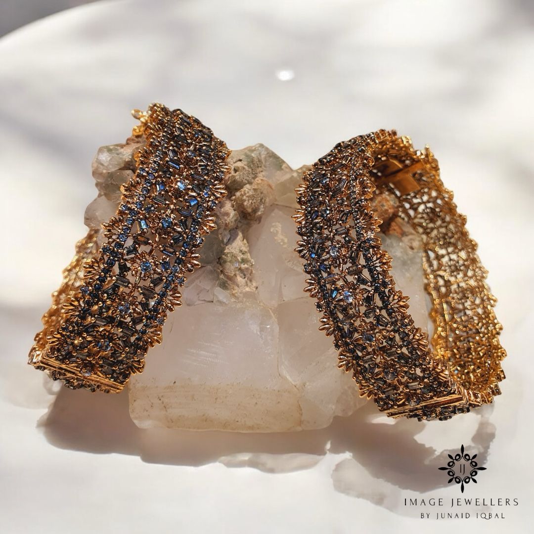 Here’s a glimpse of luxury redefined – our exquisite Kara Pair, crafted in 92.5 sterling silver, adorned with a stunning 22kt gold plating, and finished with a regal oxidized polish. A perfect blend of tradition & trend, designed for those who love making a statement!