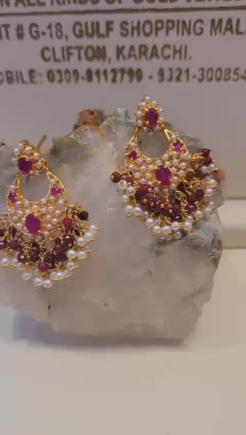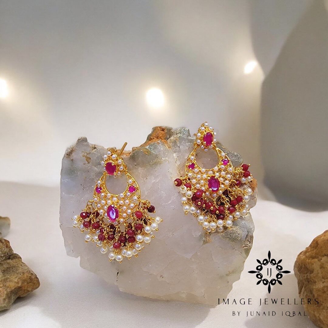 These exquisite earrings feature vibrant rubies paired with lustrous real pearls, creating a stunning contrast that exudes elegance. The rich red hues of the rubies, combined with the classic beauty of pearls, make these earrings a timeless accessory for any occasion.