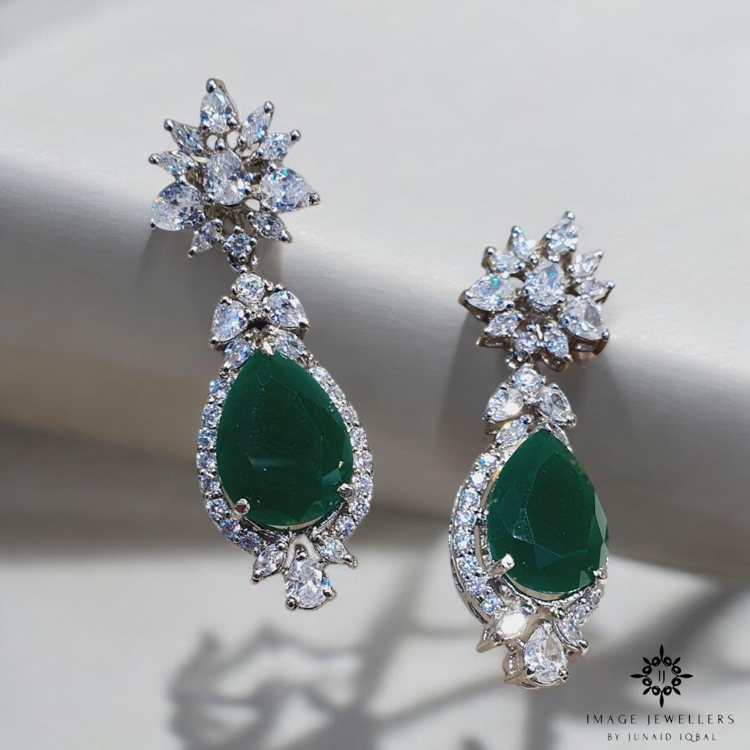 ✨ Pear Marquise, but make it eternal! ✨ Serve lewk in these 22kt gold-plated stunners, crafted from luxe 92.5 pure silver and dripping with diamonds. That bold emerald green stone? Total main character energy. 💎💚