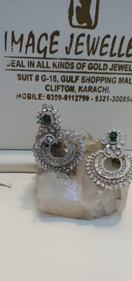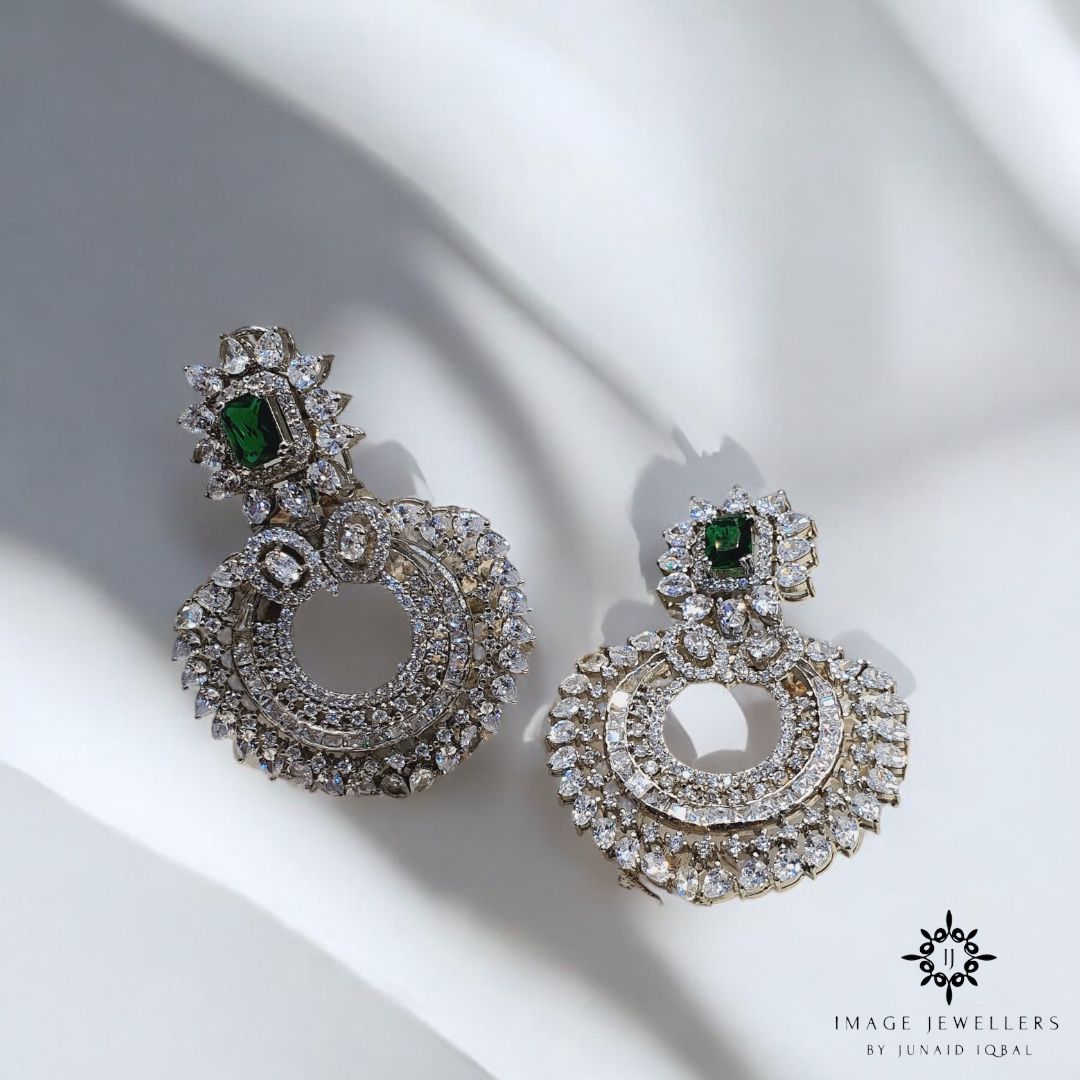 💎 Material: 92.5 Pure Silver 💎 Finish: 22kt Gold Plated 💎 Stones: Rhodium Studs + Emerald Center 💎 Design: Chand Bali