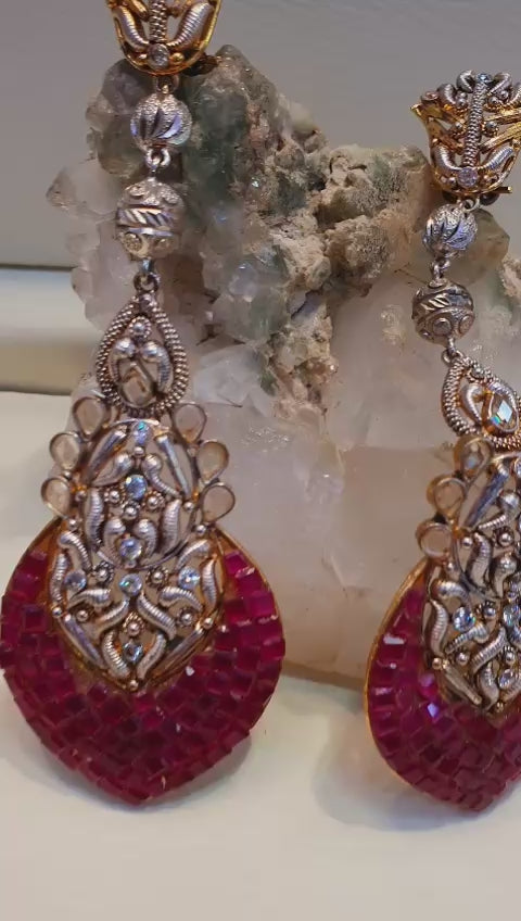 These stunning ruby earrings showcase the rich, vibrant red of natural rubies, elegantly designed to capture attention. Crafted with precision, they offer a perfect blend of luxury and sophistication, making them an ideal accessory for both special occasions and everyday elegance.