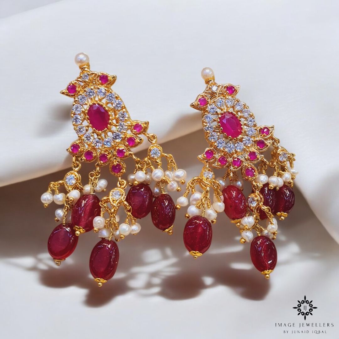 ✨ Unleash your inner queen with these show-stopping earrings! ✨ Crafted from 92.5 pure silver and dipped in 22kt gold, these beauties are designed to dazzle. Featuring heritage red ruby stones, they’re the perfect mix of tradition and trend. 💎