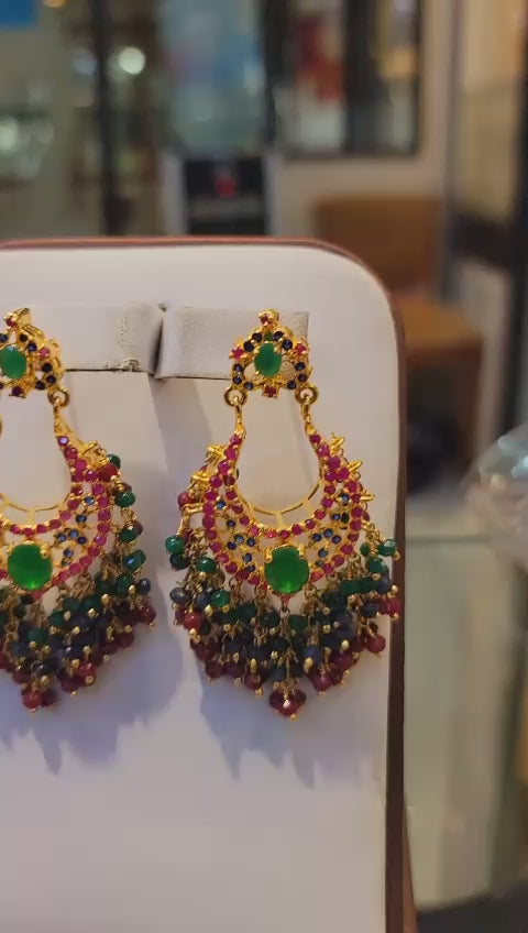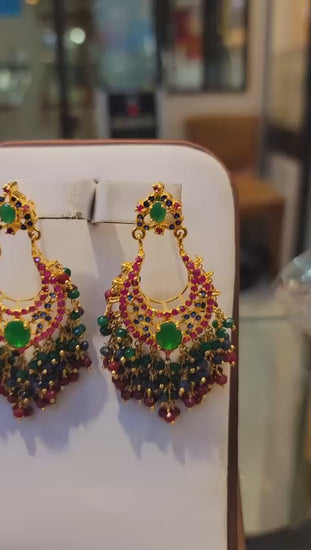 These stunning earrings feature a captivating blend of vibrant rubies and lush jade stones, beautifully set to create a striking visual contrast. The rich red of the rubies symbolizes passion and vitality, while the deep green of the jade represents harmony and balance. This exquisite combination makes these earrings a perfect accessory for adding a touch of sophistication and color to any outfit, suitable for both everyday wear and special occasions.
