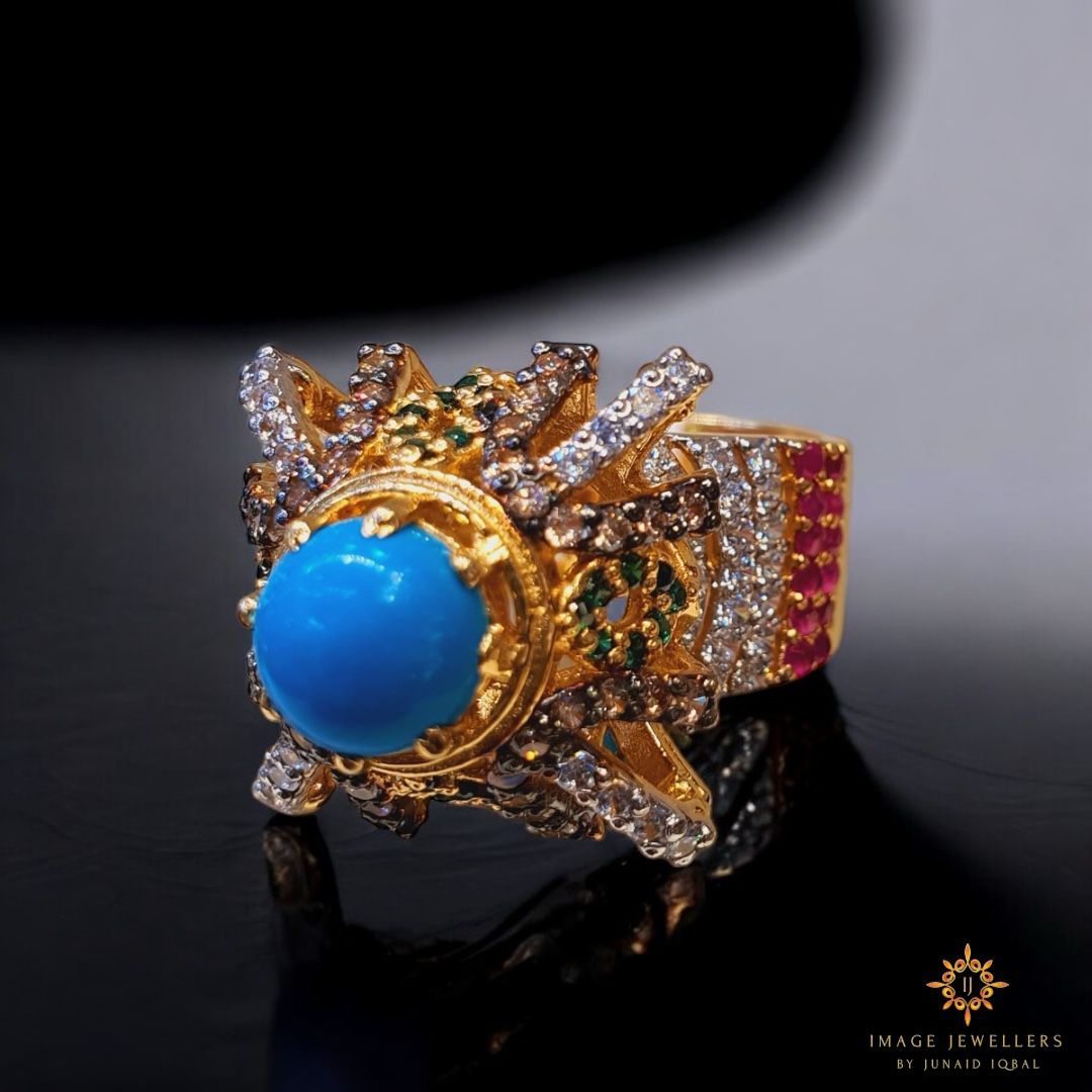 Layers on layers of ✨luxury✨—because one detail is never enough! This 22kt gold-plated 925 silver masterpiece is crafted to make every moment unforgettable. From the yellow gold floral elegance to the vibrant turquoise, sparkling diamonds, and deep dark green zircons, every inch tells a story. And just when you think it can't get better—look to the band ends for those shining tiny rubies bringing that final touch of perfection. Elevate your style, turn heads, and let your jewelry do the talking!
